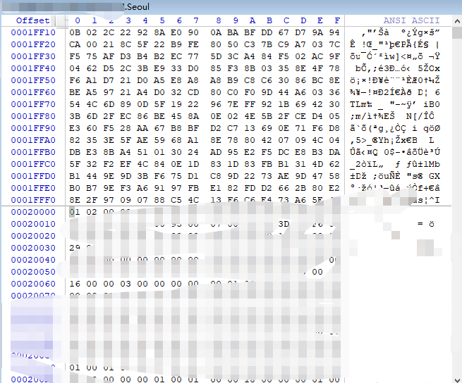经过上面对SQL Server数据库被加密文件的分析,我们可以得出结论,该SQL Server数据库只被加密了文件头部256扇区,尾部疑似也占用了部分扇区。由此我们可以推断该文件被加密的扇区占比为1%不到: