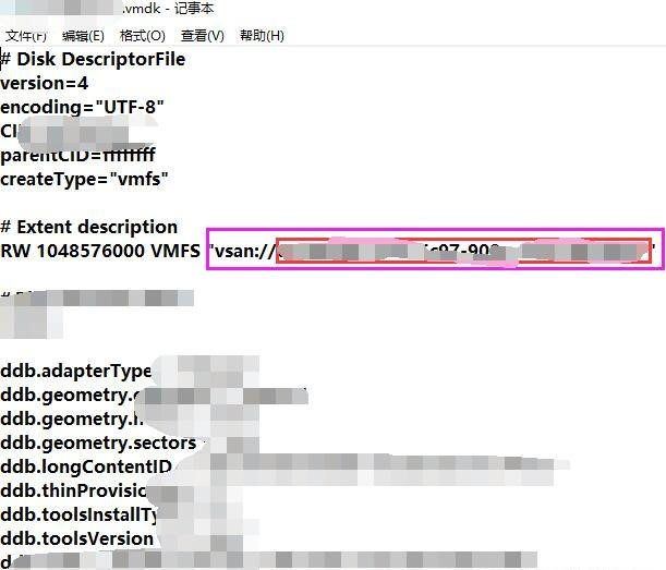 我们可以下载1kb的VMDK文件,使用txt打开后可以看到与之关联的虚拟对象的UUID,红框内就是与之关联的虚拟对象ID: