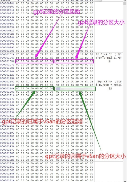 有些极端情况下,该虚拟对象已经在vSphere监控里面丢失,无法找到该虚拟对象,则需要手动分析,访问硬盘底层扇区,呈现结构如下。解析vSAN分布式存储的分区在该HDD和SSD上占用的空间,在这些空间内可以通过16进制数编辑器解析出丢失的虚拟对象ID,提取指定虚拟对象或VMDK虚拟磁盘文件。