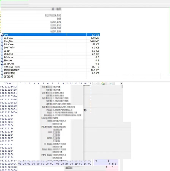 经过现场勘验,得知10台存储都采用相同的配置,2块300GB的ESXi系统盘(RAID1),8块2TB的HDD物理硬盘,4块480GB的SSD闪存盘,重建磁盘组后丢失一个ID为***的虚拟磁盘文件,该虚拟磁盘大小为20TB。ESXi系统盘是独立的,与HDD物理盘和SSD闪存盘是隔绝的,不参与数据存储工作,采用的是常见的VMFS分区结构;其中2块HHD加上1块SSD组成一个磁盘组,本次案例用户在创建集群的时候,选择的是单点式存储,启用了vSAN,三块硬盘都采用了vSAN分区结构;故:同一磁盘组下的2块HDD隶属磁盘组内的SSD,但并没有直接数据关系。
